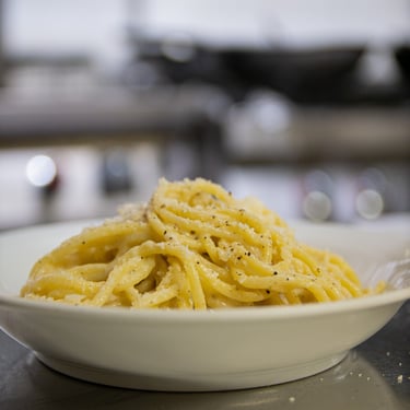 La passione di Gianni per la cucina nasce a Roma, nell'albergo di famiglia, dove, ancora ventenne, incontra l'iconica Sora Lella, che gli svela i segreti della vera amatriciana. Questo incontro segna l'inizio del suo percorso culinario, che lo porta fino a Reggio Emilia, dove apre Cacio e Pepe. Oggi, con una nuova location più ampia ed elegante, il ristorante diventa 'Er Nuovo Cacio e Pepe', continuando a deliziare i suoi ospiti con i sapori autentici della tradizione romana.